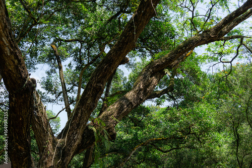 Fototapeta premium Sunlit Branches and Lush Foliage in a Forest Canopy
