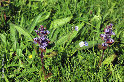 © Judith, Fototapeta premium Sunlit Bugle flowers, Derbyshire England