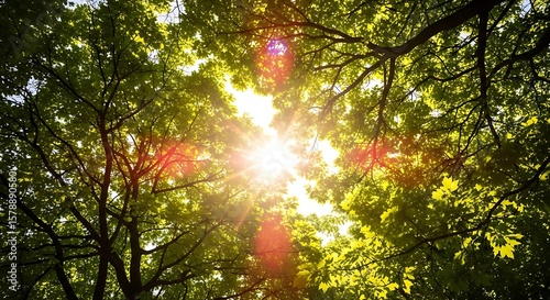 © Octopus16, Obraz premium Sunlit Canopy: A Summer's Day in the Woods