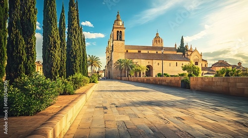 Fototapeta premium Sunlit Cathedral Pathway: A Serene Mediterranean Vista