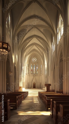 Fototapeta premium Sunlit church interior, serene and grand.