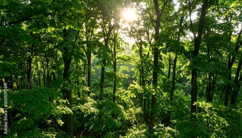 © salwa, Fototapeta premium Sunlit Deciduous Forest Canopy.