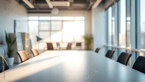 Fototapeta premium Sunlit empty desk in a minimalist office setting, conveying a professional...