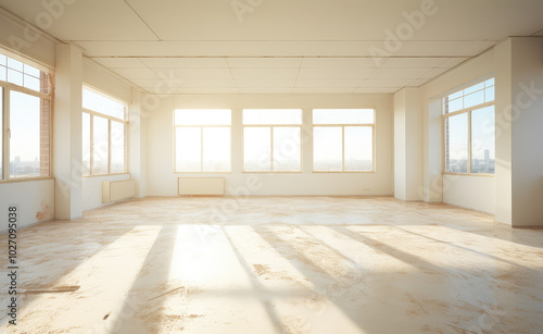 © evening_tao, Obraz premium Sunlit Empty Office Space