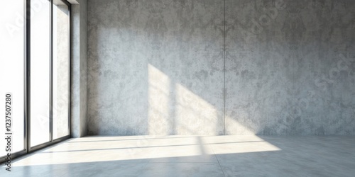 Obraz premium Sunlit Empty Room with Concrete Wall and Large Window Featuring Minimalist...