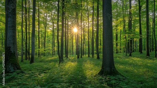 © rawdesign, Fototapeta premium Sunlit Forest: A Tranquil Scene of Nature's Majesty