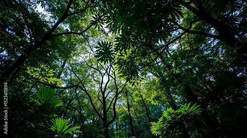 © Nopparat, Fototapeta premium Sunlit Forest Canopy: Nature's Embrace for a Sustainable Future