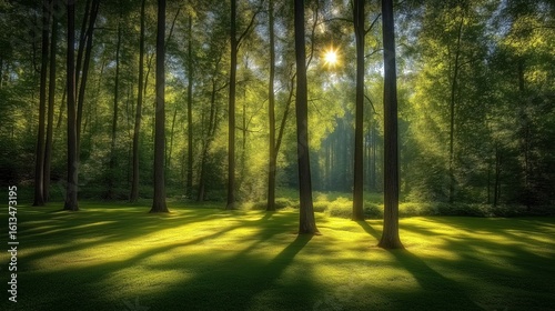 © li, Obraz premium Sunlit Forest Clearing