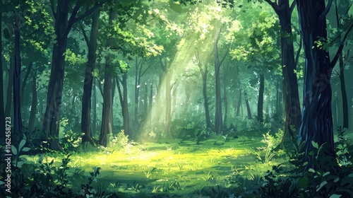 Obraz premium Sunlit Forest Clearing Peaceful Green Canopy