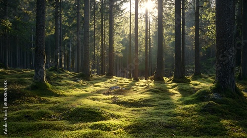 Obraz premium Sunlit Forest Mossy Ground