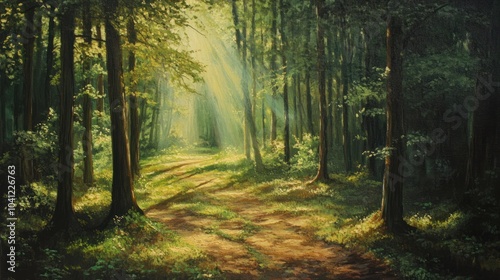 © adiba sakila atmari, Fototapeta premium Sunlit Forest Path