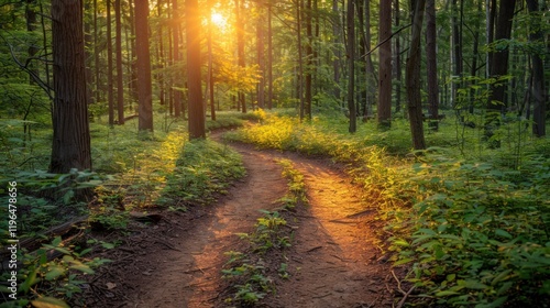 © Fitriana, Fototapeta premium Sunlit Forest Path