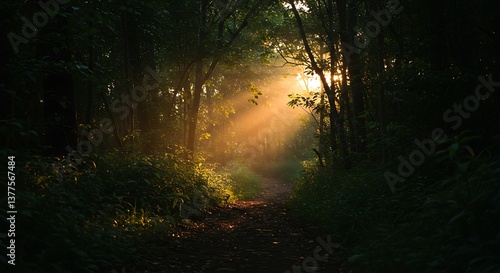 © Oktaf, Obraz premium Sunlit Forest Path