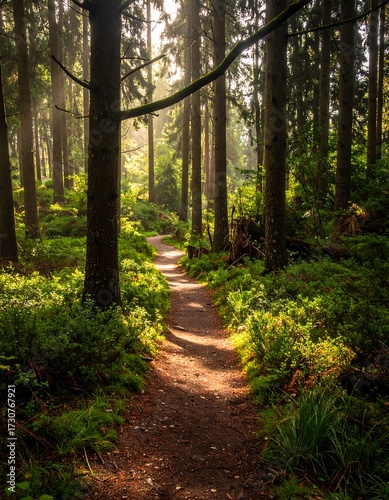 Obraz premium Sunlit forest path (1)