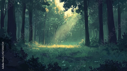 Fototapeta premium Sunlit Forest Path: A Serene Digital Painting