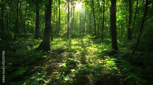 Obraz premium Sunlit Forest Path: A Serene Escape into Nature's Embrace