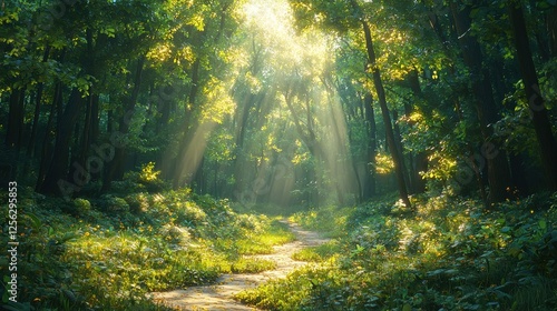 Fototapeta premium Sunlit Forest Path - A Tranquil Nature Escape