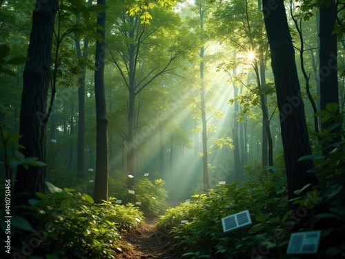 Obraz premium Sunlit Forest Path AI Generated Image