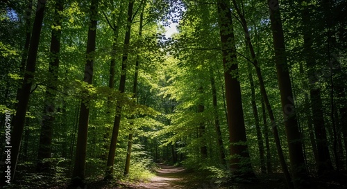 © Ali, Obraz premium Sunlit Forest Path. Ai generation