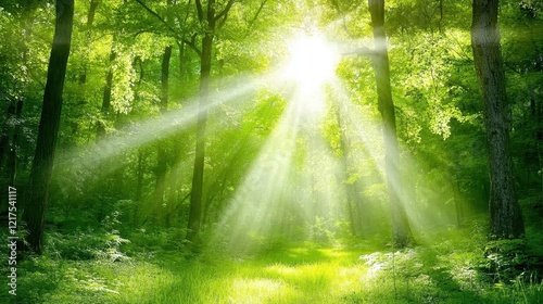 © Stock Kingdom, Fototapeta premium Sunlit Forest Path Green Trees Summer Sunlight