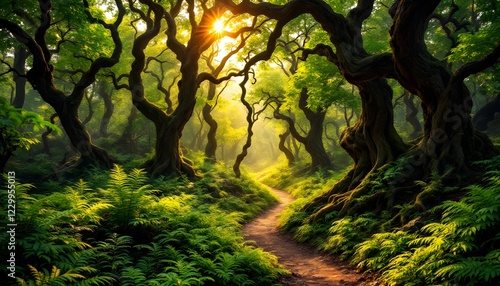 Fototapeta premium Sunlit Forest Path Magical Nature Scene Photography