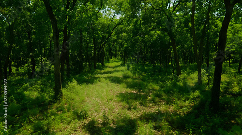 © queen, Obraz premium Sunlit forest path, nature trail, summer