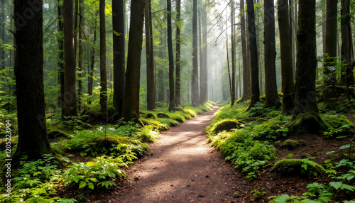 Fototapeta premium Sunlit Forest Path Peaceful Nature Trail Photography