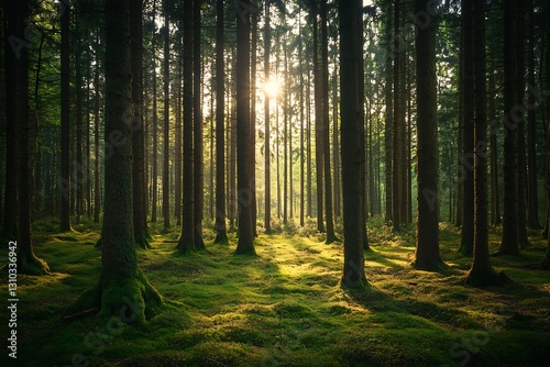 Fototapeta premium Sunlit Forest Path: Serene Nature Photography