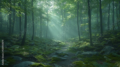 Obraz premium Sunlit Forest Path Tranquil Nature Scene