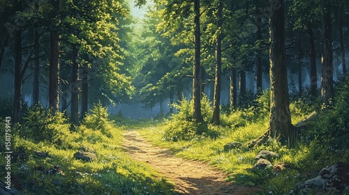 Obraz premium Sunlit Forest Path ultra-detailed artwork in sharp focus featuring enhanced...
