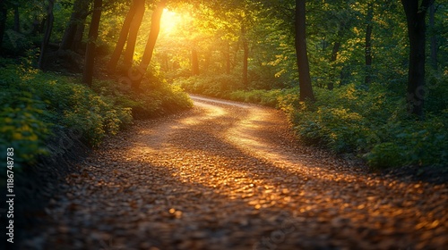 Obraz premium Sunlit Forest Path Winding Through Lush Green Trees