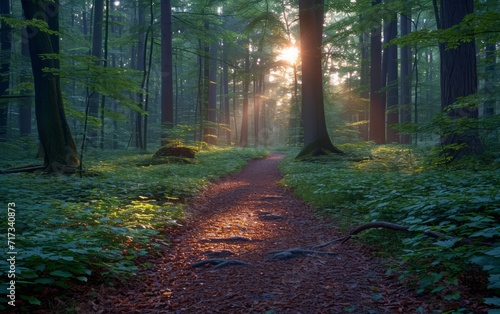 Obraz premium Sunlit Forest Pathway