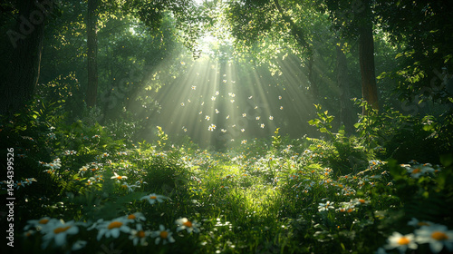 © Alleuy, Fototapeta premium Sunlit forest pathway with flowers