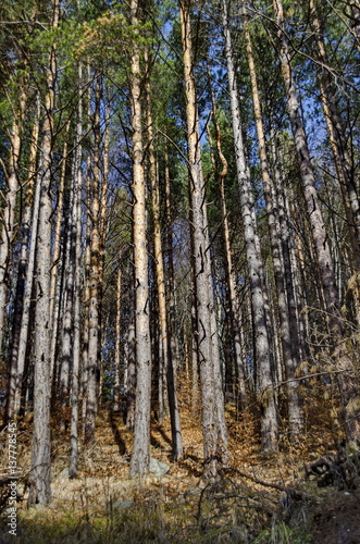 © vili45, Fototapeta premium Sunlit forest pine-trees in Vitosha mountain, Bulgaria