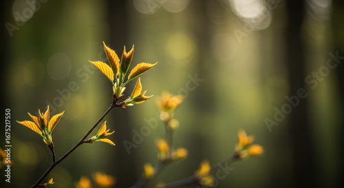 © CAT, Obraz premium Sunlit Forest Sapling A Vibrant Burst of Life in Spring