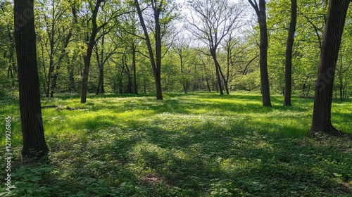 © CamBot, Fototapeta premium Sunlit Forest Scene: A Tranquil Green Haven