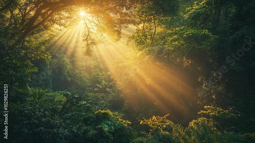 © Kitta Studio, Fototapeta premium Sunlit Forest Scene Captivating Nature Beauty