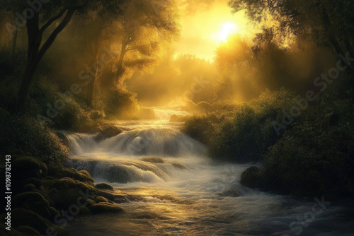 © Matija, Fototapeta premium Sunlit Forest Stream