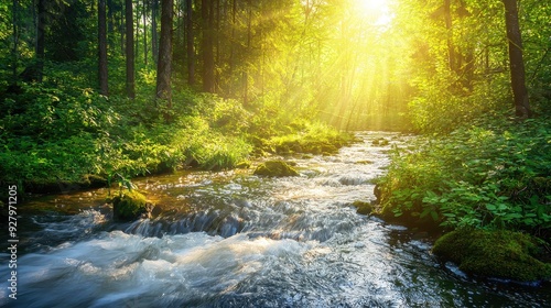 © BOJOShop, Obraz premium Sunlit Forest Stream.