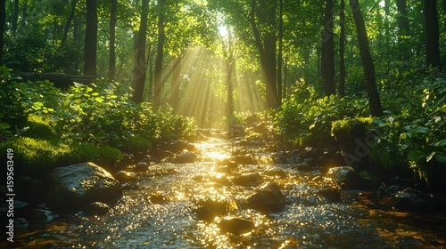 Obraz premium Sunlit Forest Stream: A Serene Nature Escape