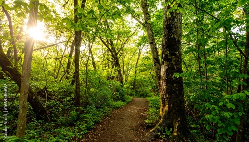 Obraz premium Sunlit forest trail scene