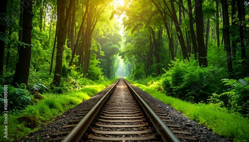 © KELOMPOK, Obraz premium Sunlit forest train track