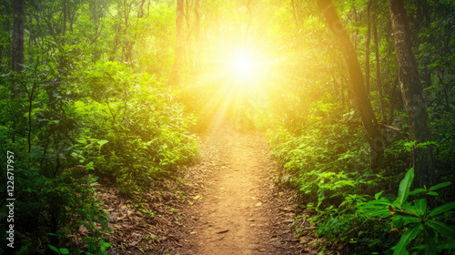 Obraz premium Sunlit forest with a winding path