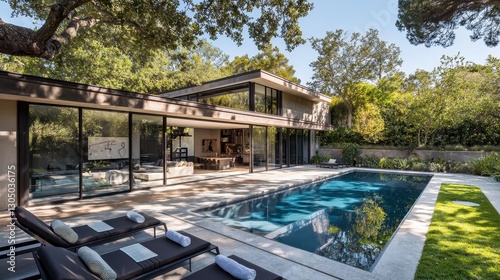 © Dueo, Obraz premium Sunlit Geometric Modern Duplex with Poolside