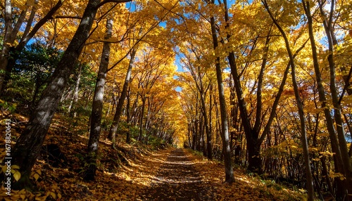 Obraz premium Sunlit golden autumn trail