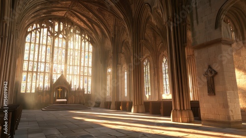 © KOOLAIDMAN100X, Obraz premium Sunlit Gothic church interior
