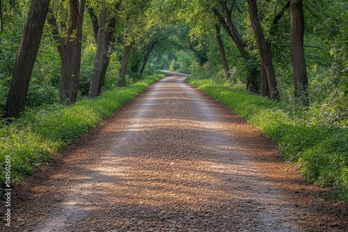 Fototapeta premium Sunlit Gravel Path Through a Canopy of Trees
