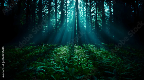 Obraz premium Sunlit Green Forest With Dark Shadows