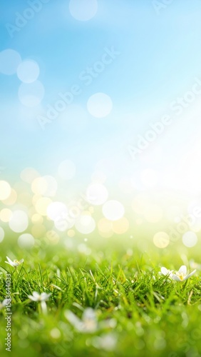 Obraz premium Sunlit green grass with daisies nature scene soft focus tranquil environment...