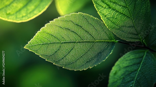 Obraz premium Sunlit green leaf, forest backdrop, nature detail, eco design